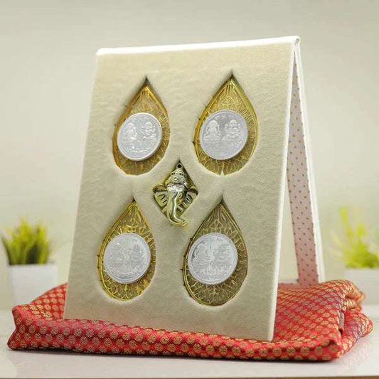 999.9 Purity Ganesh Lakshmi ji Silver Coins With Gift Wrap For Diwali ( Pack Of 4 )