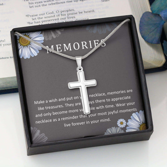 Memories Necklace, Artisan Crafted Cross Necklace “ Reminder Memories Are Treasures Necklace
