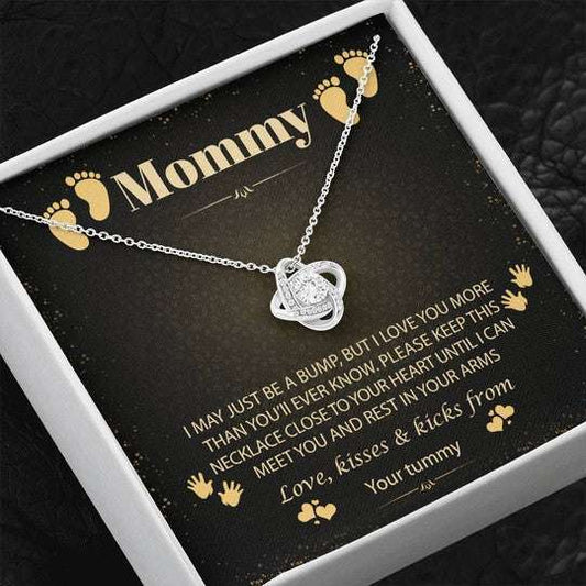 Mom Necklace, Gift For Mom I Love You From Your Tummy Christmas Love Knot Necklace