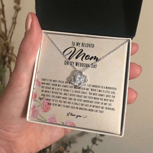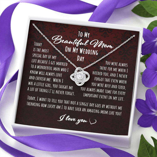 Mom Necklace, Gift For The Mother Of The Bride Wedding Day “ Love Knot Necklace From Daughter