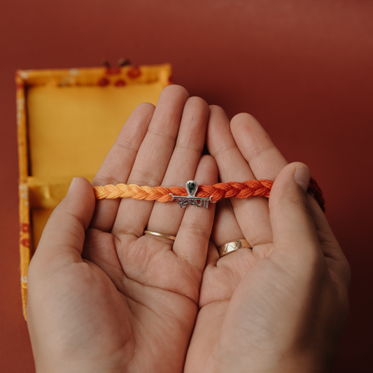 Rakva 92.5 Sterling Silver Rakhi For Brother | Om Bracelet | Rakhi for Men and Women | With Roli Chawal Tilak for Kids