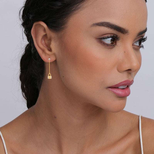 Chic & Charming – 925 Sterling Silver 14K Gold Plated Delicate Lock Earrings | Rakva
