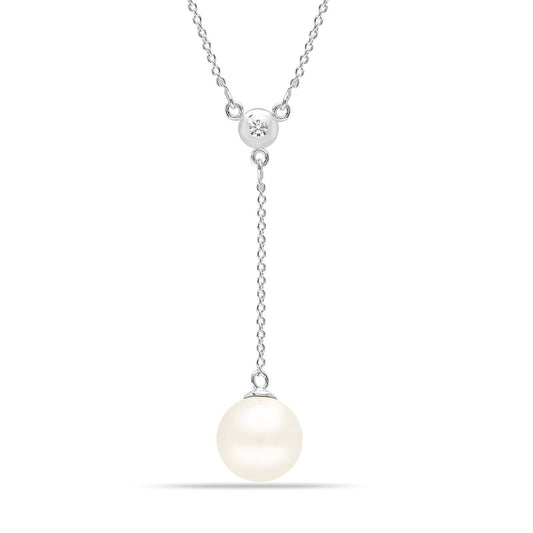 Lustrous Grace: 925 Sterling Silver 18K White Gold-Plated 10MM Pearl Y-Necklace - Hypoallergenic Elegance for Women