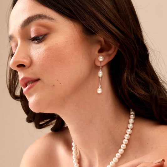Timeless Beauty – 925 Sterling Silver Triple Pearl Drop Dangle Stud Earrings | Rakva