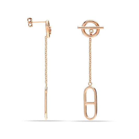 Classic Beauty: 925 Sterling Silver 14K Rose Gold Plated Italian Design Toggle Clasp Earrings - Timeless Elegance for Women and Teens