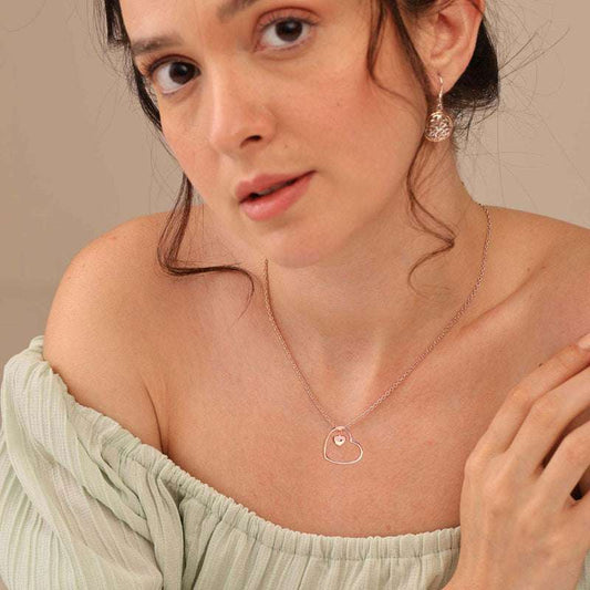 Eternal Romance – 925 Sterling Silver Rose-Gold Plated Open Heart Love Pendant Necklace for Women | Rakva