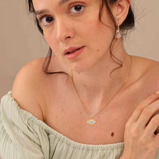Guardian Charms: 925 Sterling Silver 14K Gold Plated Good Luck Evil Eye Pendant Necklace - Protective Symbol of Luck