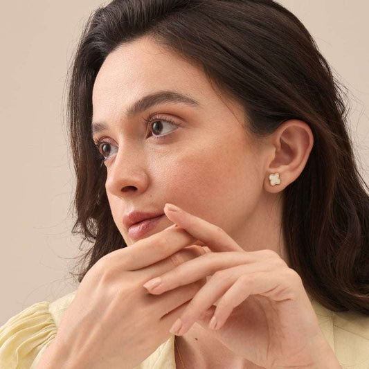 Lucky Charms: 925 Sterling Silver 14K Gold-Plated Mother Of Pearl Clover Leaf Stud Earrings - Elegant Accents for Women