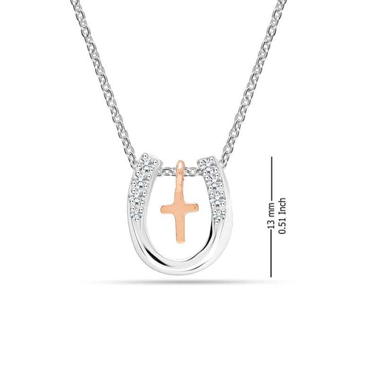 Lucky Embrace: 925 Sterling Silver Cross and Horseshoe Pendant Necklace - Perfect Jewelry Gift for Women and Teens