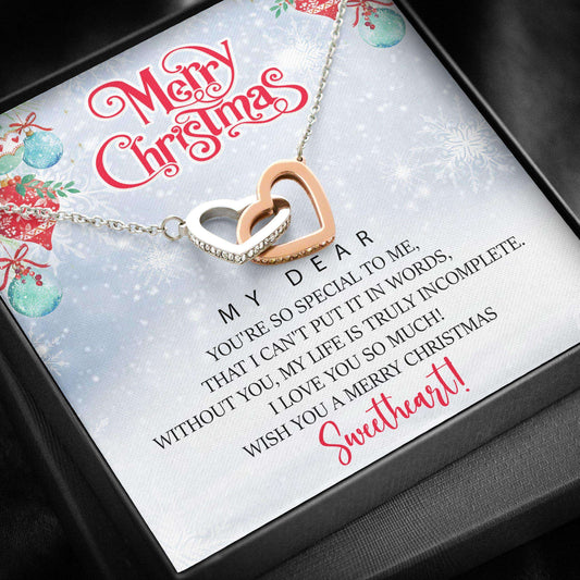 Christmas Necklace, Interlocking Hearts “ Merry Christmas To My Dear Necklace
