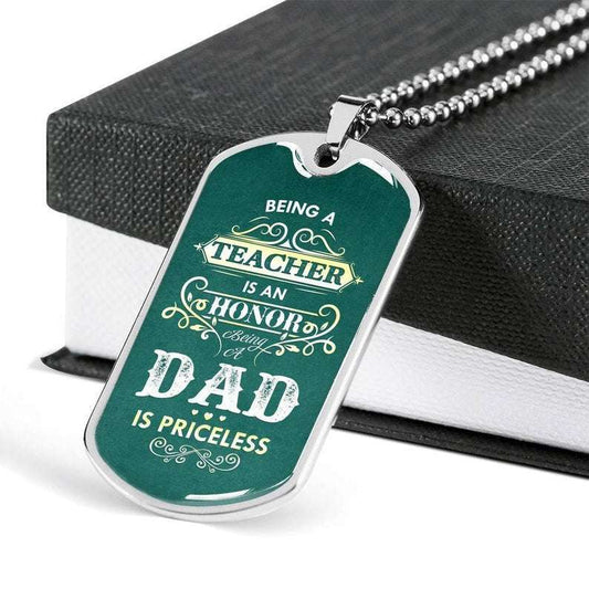 Dad Dog Tag, Being A Teacher-Dad Military Dog Tag Necklace For Dad