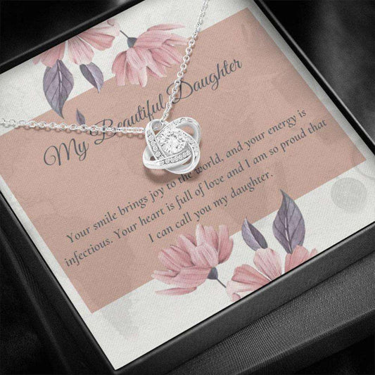 Daughter Necklace, Daughter Message Gift “ Sweet Card Necklace “ Best Daughter Gift “ Love Knot Necklace To Daughter