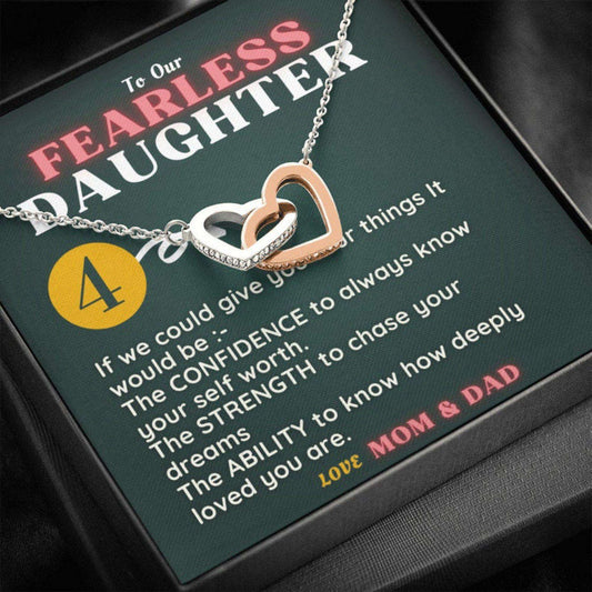 Daughter Necklace, Daughter Valentines Day Necklace Gift Box From Mom Dad|To Our Fearless Daughter Necklace