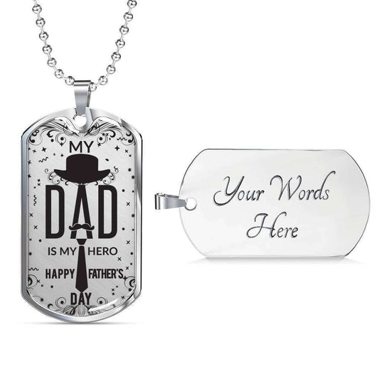 Dad Dog Tag Custom Picture Father’S Day Gift, Dad Is My Hero Dog Tag Military Chain Necklace For Dad Dog Tag
