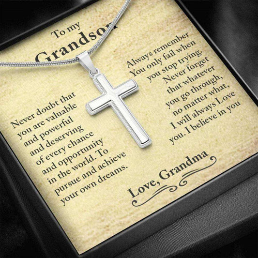 Grandson Necklace, Grandson Baptism Gift Cross, Grandma And Grandson Necklace Gift, Gift For Grandson From Grandma