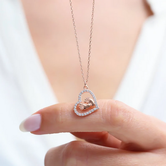 Treasured Moments – Baby Feet Heart Necklace | 925 Sterling Silver Pendant for Moms by Rakva
