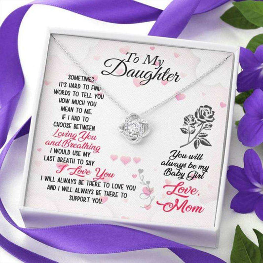 Daughter Necklace, To My Daughter Œbreathing” Love Knot Necklace Gift From Dad Mom
