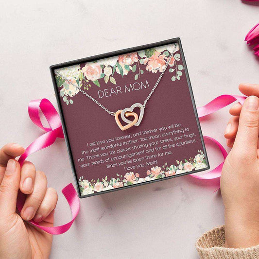 Mom Necklace “ Dear Mom Necklace “ Interlocking Hearts Necklace With Gift Box For Birthday Christmas