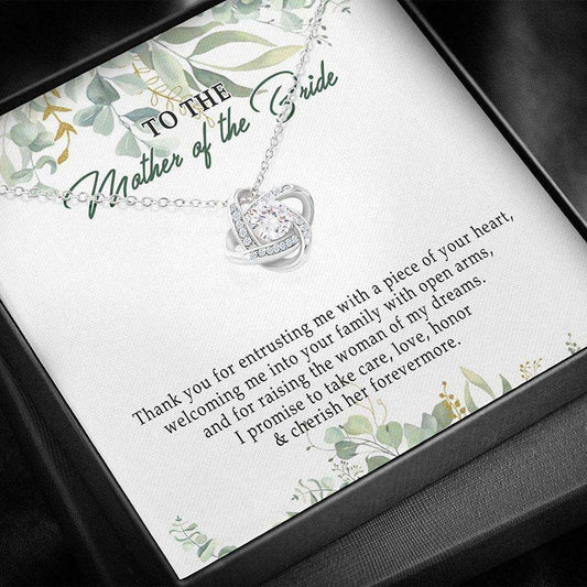 Mom Necklace, Mother Of The Bride Necklace Wedding Gift, Promise To Take Care, Love Knot Necklace Gift For Mom