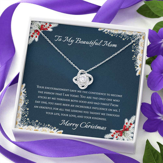 Mom Necklace, To My Beautiful Mom Merry Christmas Love Knot Necklace