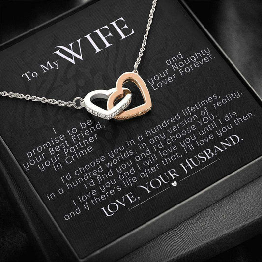 Wife Necklace, To My Wife Necklace Twin Hearts Pendant Wife Gift For Her, I Promise To Be!