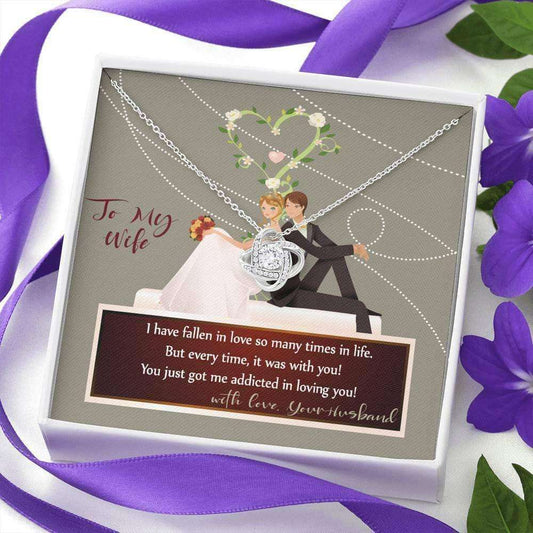 Wife Necklace, To My Wife Necklace Love Knot Necklace Anniversary Gift For Wife Addicted To You