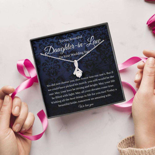 Daughter-In-Law Necklace, To Our Daughter-In-Law Wedding Day Necklace Gift, To Bride From Parents-In-Law