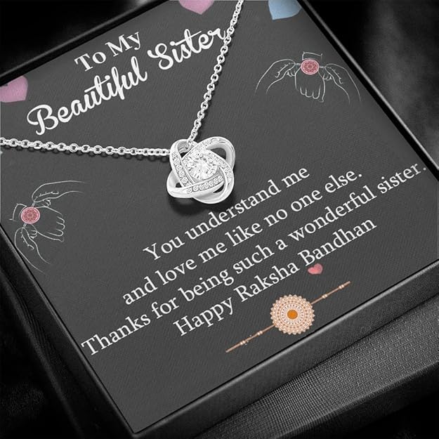 The face that brightens your day deserves a big surprise and lots of love, especially when it's Raksha Bandhan - the most awaited festival of the year! The festive season has almost begun and amidst all those celebrations, if you've forgotten to find the perfect pick for your angel sister, worry not - Rakva introduces you to the perfect rakhi gift for sister, the Love Knot Pendant. Being the best rakhi gift for sister, it is curated pure out of love and 925 sterling silver. This thoughtful rakhi gift for sister represents an unbreakable bond between two souls. Yours and hers. Remember, Raksha Bandhan isn’t about big bouquets and chocolates. Sometimes it’s the most thoughtful gift for wife that can be the most romantic.