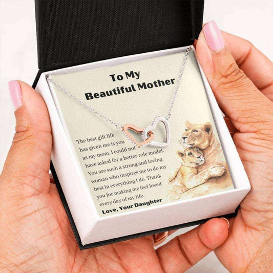 Mom Necklace Gift “ Lion Mom Necklace “ Mom Necklace With Message Card “ Lion Mom Gift “ 2 Heart Necklace “ Best Mom Ever