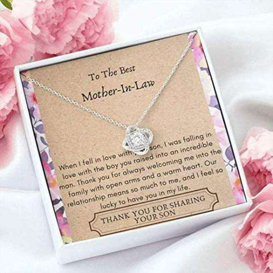 Mother-In-Law Necklace, To My Best Mother In Law Love Knot Necklace Gift “ Thank You For Sharing Your Son