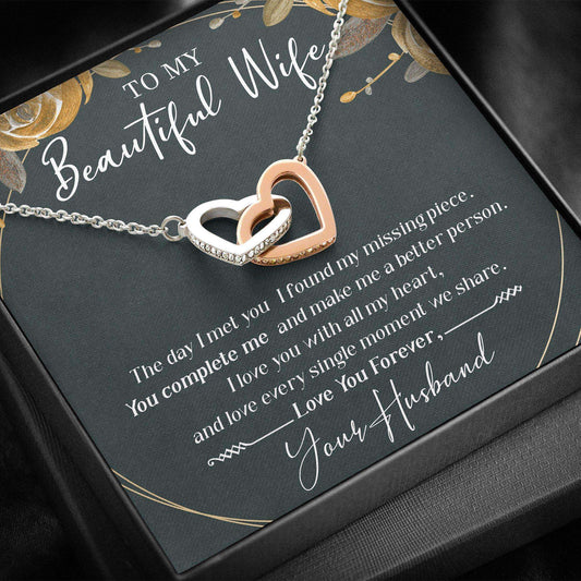 Wife Necklace, Wife Gift, To My Beautiful Wife “ Interlocking Hearts Necklace
