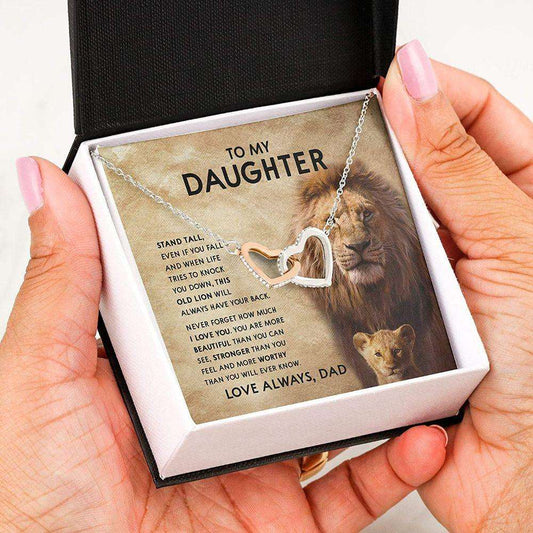 Daughter Necklace, Father Daughter Necklace, Lion Stand Tall Knock Down Back Love Always