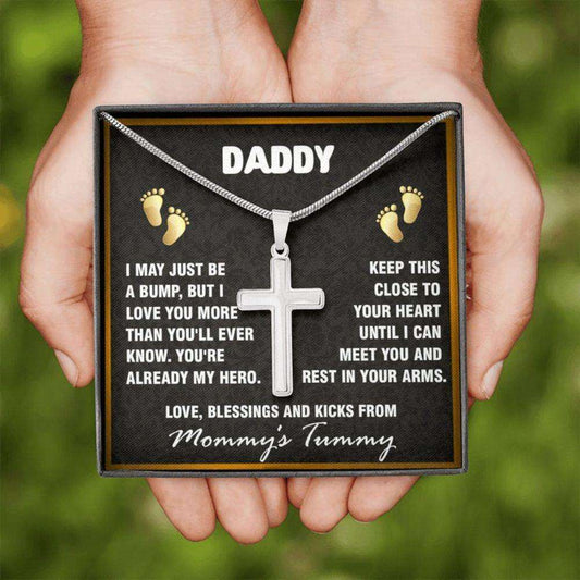 Dad Necklace, To My Daddy Hero Black Cross Necklace Gift From Daughter Son