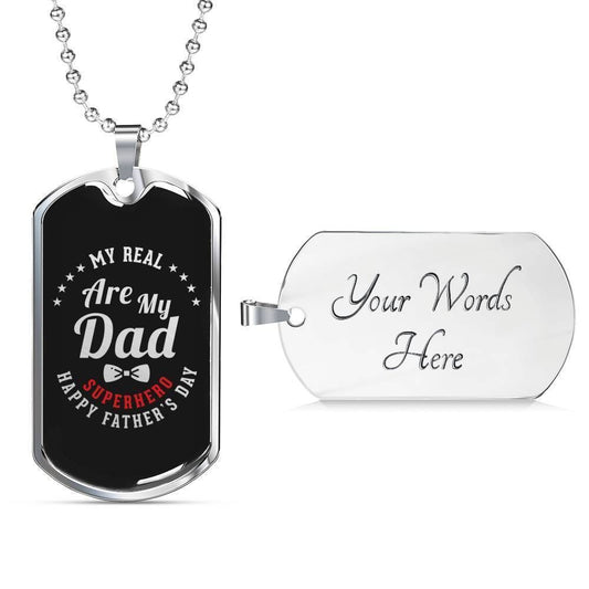 Dad Dog Tag Father’S Day Gift, My Real Hero Dog Tag Military Chain Necklace Gift For Dad