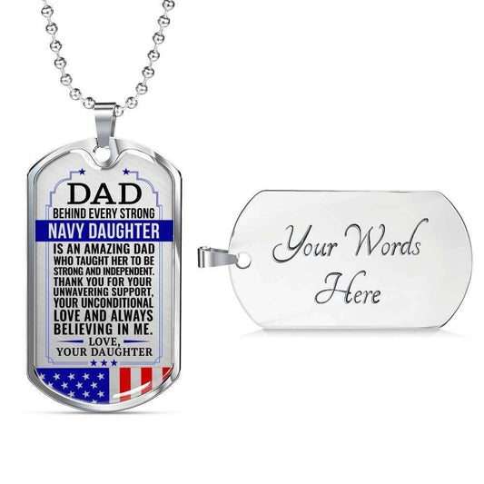 Dad Dog Tag Father’S Day Gift, Navy Dad “ The Worry “ Love, Your Daughter “ Dog Tag Military Chain Necklace Custom Engraved