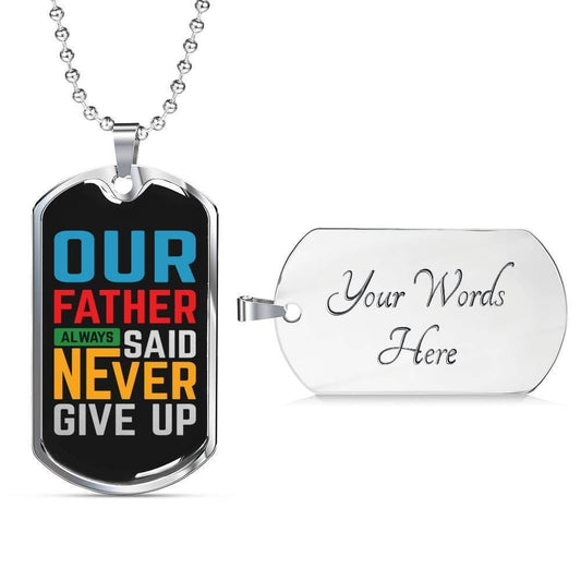 Dad Dog Tag Father’S Day Gift, Never Give Up Dog Tag Military Chain Necklace Gift For Dad