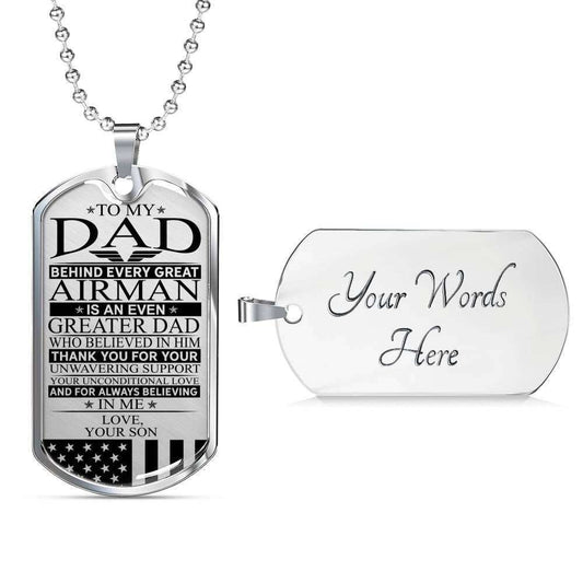 Dad Dog Tag Father’S Day Gift, Custom Airman’S Dad Unconditional Love Dog Tag Military Chain Necklace Dog Tag Military