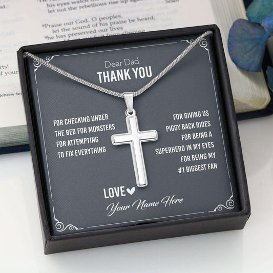 Dad Necklace, Dad Cross Necklace “ Thank You Dad Necklace Gift Fathers Day Necklace Cross Necklace
