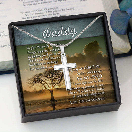 Dad Necklace, Daddy Necklace “ Dad Always My Hero Take My Hand “ Remembering Dad Gift Cross Necklace