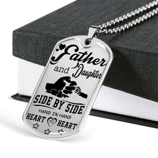Dad Dog Tag Custom Picture Father’S Day, Father And Daughter Side By Side Hand In Hand Dog Tag Necklace Gift For Dad