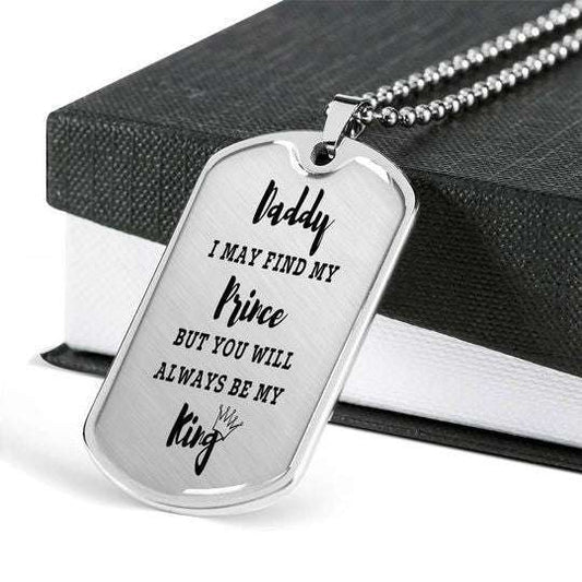 Dad Dog Tag Custom Picture Father’S Day, I May Find My Prince But You Will Always Be My King Dog Tag Necklace Gift For Dad