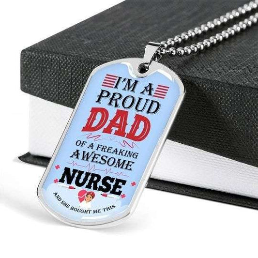 Dad Dog Tag Custom Picture Father’S Day, I’M A Proud Dad Of A Freaking Awesome Nurse Dog Tag Necklace For Dad