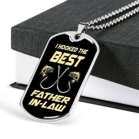 Dad Dog Tag Custom Picture Father’S Day, I Hooked The Best Father In Law Dog Tag Necklace For Dad