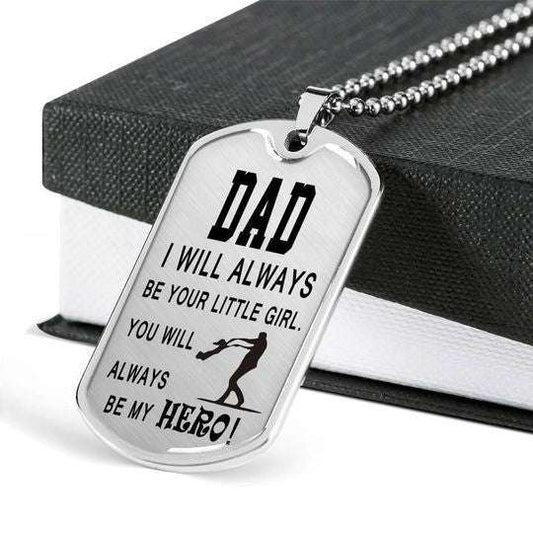 Dad Dog Tag Custom Picture Father’S Day, I Will Always Be Your Little Girl You Will Always Be My Hero Dog Tag Necklace Gift For Dad