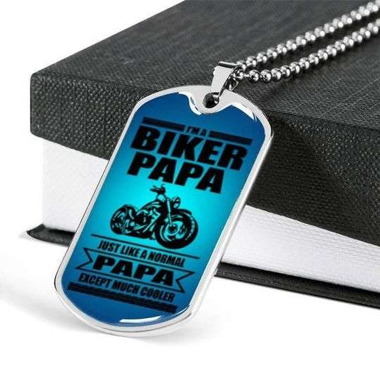 Dad Dog Tag Custom Picture Father’S Day, I’M A Biker Papa Much Cooler Dog Tag Necklace Gift For Dad