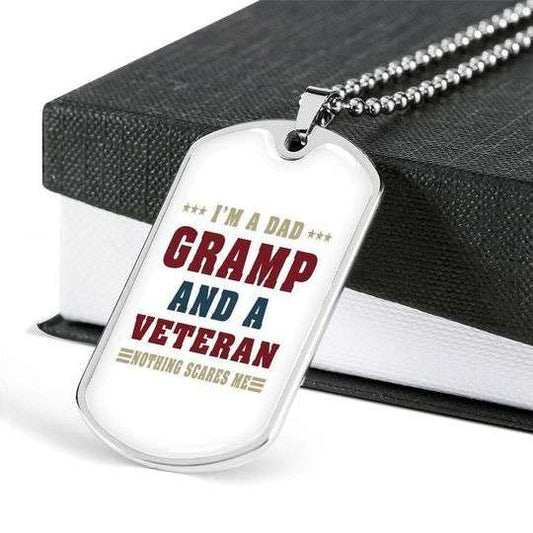 Dad Dog Tag Custom Picture Father’S Day, I’M A Dad Grandpa And A Veteran Nothing Scares Me Dog Tag Necklace Gift For Dad