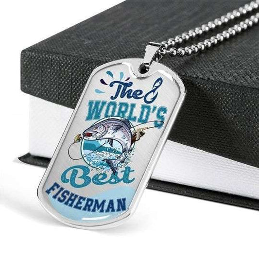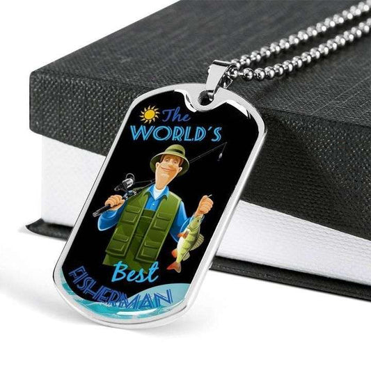 Dad Dog Tag Father’S Day, The World’S Best Fisherman Dog Tag Necklace Gift For Dad