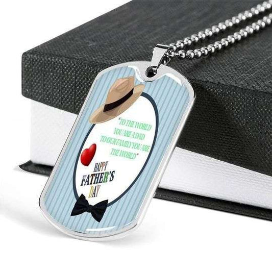 Dad Dog Tag Father’S Day, To Our Family You Are The World Dog Tag Necklace Gift For Dad