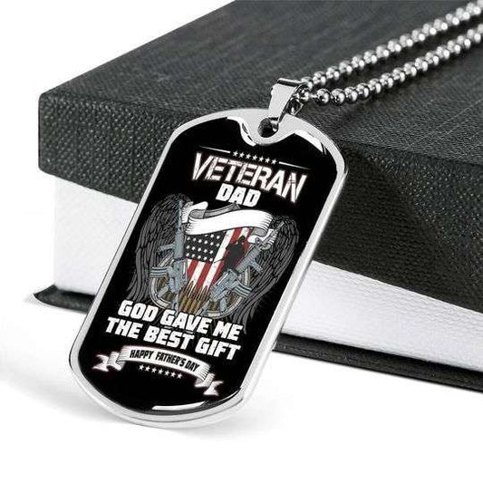 Dad Dog Tag Father’S Day, Veteran Dad God Gave Me The Best Gift Dog Tag Necklace For Dad