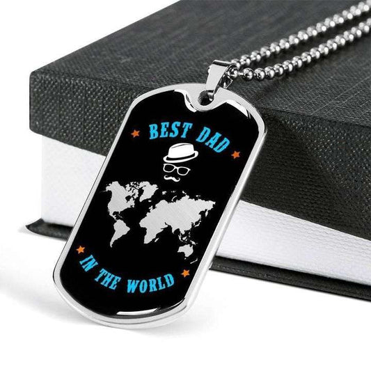 Dad Dog Tag Father’S Day, World Map Best Dad In The World Dog Tag Necklace Gift For Dad